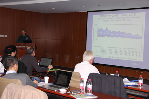本次会议共安排4个特邀报告。英国爱丁堡生态和水文中心的David Fowler院士就欧洲和中国的空气质量对生态系统和人体健康的长期影响展开对比分析,介绍了英国实施空气清洁措施后收到的良好效果,为亚洲的空气治理提供借鉴作用。美国奥本大学Art Chappelka教授概述了地表臭氧对美国森林的影响以及美国近年来改善的空气对森林的正面影响,并建议在开展臭氧污染对树木影响的实验所要注意的问题。北京大学环境科学与工程学院院长朱彤教授介绍了中国空气颗粒污染物的来源、形成的光化学和热化学过程以及区域污染的时空格局,并对空气污染预防和控制公共政策和面临的挑战作了建议。