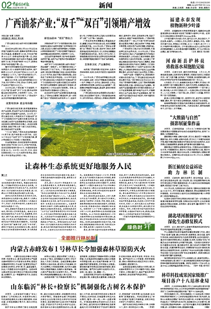 学习总书记对林草工作的重要讲话指示批示精神,做到学用结合、知行合一,推动林草生态系统高质量发展。近日,国家林草生态综合监测评价专家、实验室董仁才研究员在《中国绿色时报》发文《让森林生态系统更好地服务人民》,结合中国科学院战略性先导科技专项(A类)《美丽中国生态文明建设科技工程》研究成果,充分阐明社会-经济-自然复合生态系统理论价值,宣传和普及生态系统服务理念、生态产品价值实现思路和景感生态学方法,受到广泛重视。文章同时发布在国家林业和草原局政府网(链接http://www.forestry.gov.cn/main/5383/20220402/093708016417024.html)。