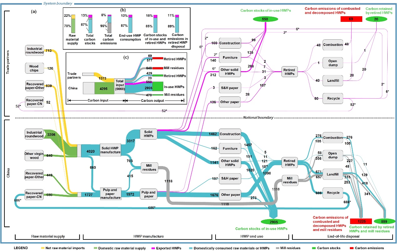 区域与城市生态安全全国重点实验室欧阳志云研究组在森林伐后碳循环与碳储量研究方面取得新进展,相关研究成果以“Carbon Balance of China-Made Wood Products Assessed Using a Trade-Linked Approach”为题在线发表在《Environmental Science & Technology》上。